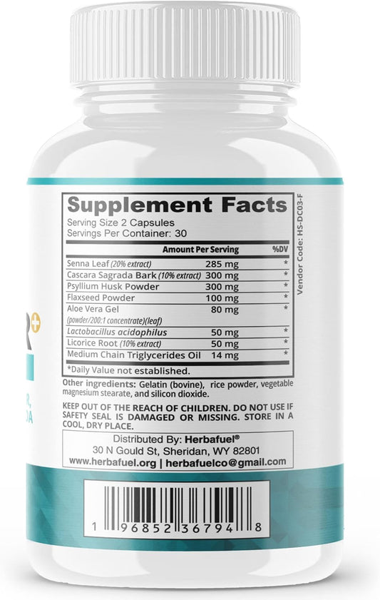 Advanced Herbafuel Colon Cleanse with Psyllium Husk Powder, Probiotics - Detox & Gut Health Support - Non-GMO Formula, 30 Capsules