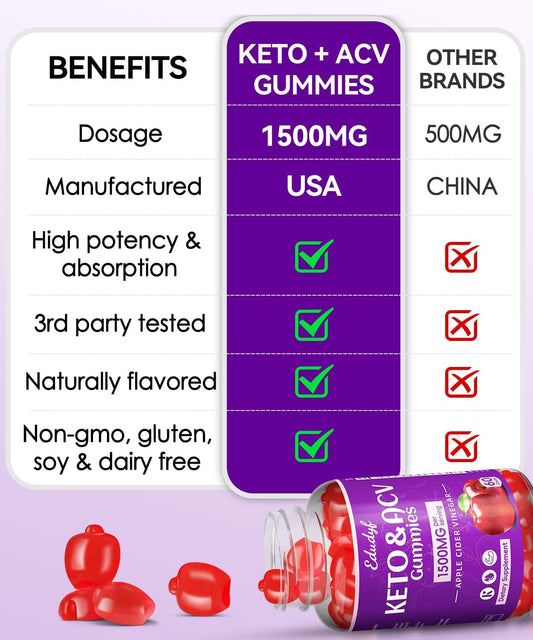 Regio EDUDYF 1500mg Apple Cider Vinegar Gummies with Probiotics, B12, Keto Support - Vegan & Non-GMO - 120C - Promotes Healthy Stature