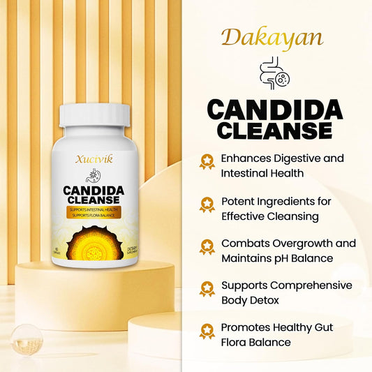 Gentle Gut & Digestive Support with Dakayan Central Natural Candida Cleanse Detox - Advanced Probiotic & Herbal Formula for Men & Women - 60 Capsules