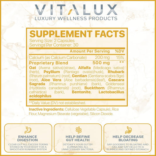 EPN Supplements VITALUX Colon Cleanse & Detox - Premium Formula for Digestion & Gut Health - 10 Powerful Ingredients - 3rd Party Tested - 60 Capsules