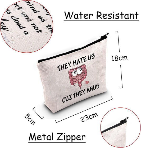 Humorous Gastroenterologist Gift: "They Hate Us Cuz They Anus" Cosmetic Bag for Colon Surgery Recovery