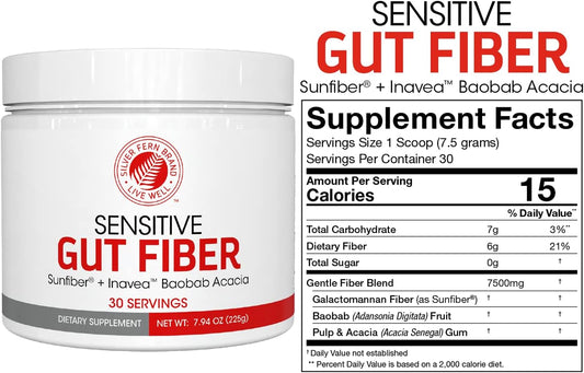 Gentle Gut Fiber Supplement with Galactomannan Guar Fiber - 30 Day Supply - 6g Dietary Fiber - Baobab Fruit & Acacia Fiber