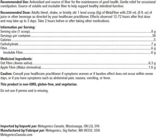 Metagenics MetaFiber Powder - 6g Fiber Blend for GI Regularity & Constipation Relief - Non-GMO & Gluten-Free - 10.72oz