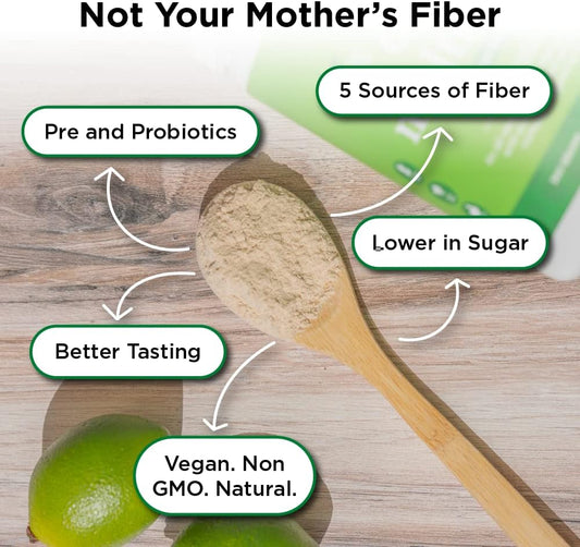 nbpure Daily Fiber Powder Blend with Prebiotic, Insoluble, Soluble Fiber + Probiotics - Digestive Health, Cholesterol & Weight Management - Coconut Lime Flavor for Women, Men, Kids