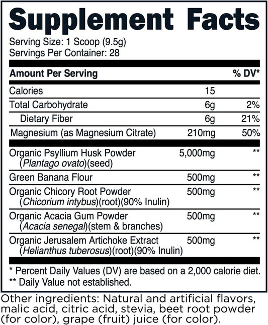TransformHQ Fiber 5 Psyllium Husk Complex Powder - Berry Flavor - 28 Servings - 5,000mg Psyllium Husk - Digestive Health - Natural Soluble Plant Fiber Blend