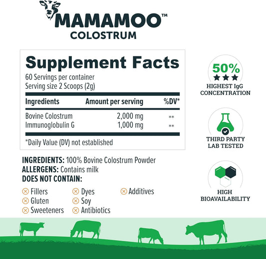 Asiya Life MamaMoo™ Incas Colostrum Powder - High IgG Content, Grass Fed, Non GMO, Gut Health, Immunity Support, Skin & Hair Benefits, 400+ Nutrients, Third Party Tested (Unflavored)