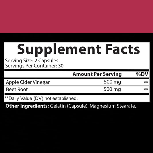 Organic Apple Cider Vinegar and Beet Root Capsules for Men and Women - 1000mg per Serving, Digestive Health and Nitric Oxide Booster - 60 Capsules, 1-Month Supply