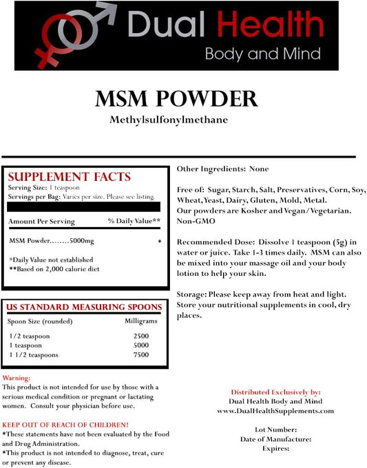 4 oz Dual Health Body & Mind MSM Powder - Pure Methylsulfonylmethane Crystals - Plant Sourced Sulfur for Fast Absorption - Vegan & GMO-Free