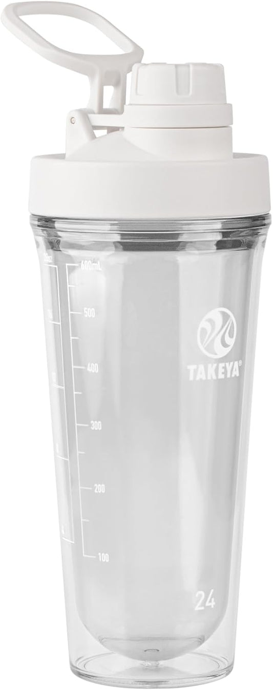 24 oz Cloud White Takeya Protein Shaker Bottle - BPA-Free, Leak-Proof Spout Lid, Dishwasher-Safe, Easy Carry for Gym
