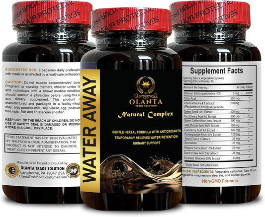 Water Away Natural Complex - Herbal Diuretic Supplement for Fluid Balance Support - 60 Capsules