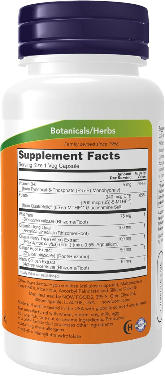 Female Balance™ Supplement with Wild Yam, Vitex, Dong Quai, GLA, Vitamin B-6, and Folate - 90 Capsules by NOW Foods