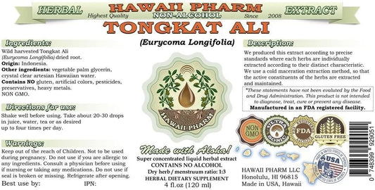 Alcohol-Free Tongkat Ali Liquid Extract 4 fl.oz by Hawaii Pharm - Eurycoma Longifolia Dried Root Glycerite Herbal Supplement