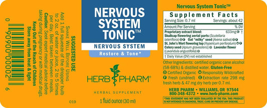 Herb Pharm Nervous System Tonic Liquid Herbal Formula for Strengthening and Calming - 1oz
