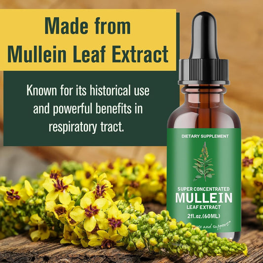 Advanced Mullein Leaf Liquid Extract - 2 FL OZ | Extra Strength Lung Cleanse & Detox Supplement - Respiratory Health & Immune Support