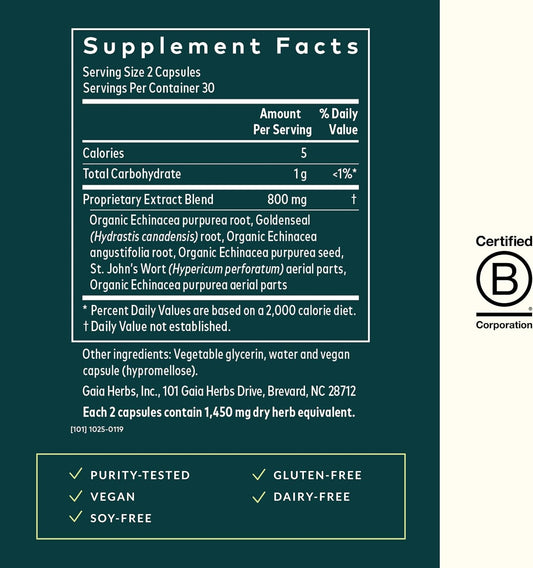 Organic Echinacea Goldenseal Supplement for Healthy Respiratory System - 60 Vegan Capsules