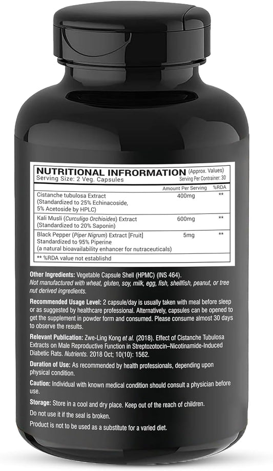 Organic Cistanche Tubulosa with Kali Musli Extract 1000mg - 60 Veg Capsules - 3rd Party Tested for Strength and Vitality