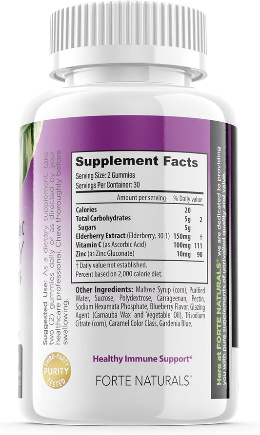 Adult Elderberry Gummies with Vitamin C, Echinacea, and Bee Propolis - Immune Support Chewables for Men and Women - Non GMO, Gluten Free - Made in USA by FORTE NATURALS