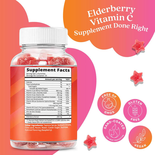 Sambucus Elderberry Gummies with Vitamin C and Zinc for Immune Support, 30 Delicious Gummies for Kids and Adults
