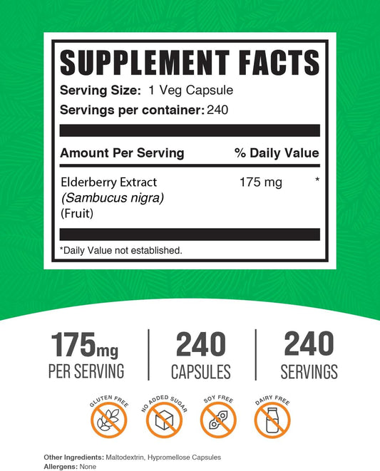 Elderberry Capsules for Immune Support - Vegan Sambucus Elderberry Supplements - 240 Veg Capsules