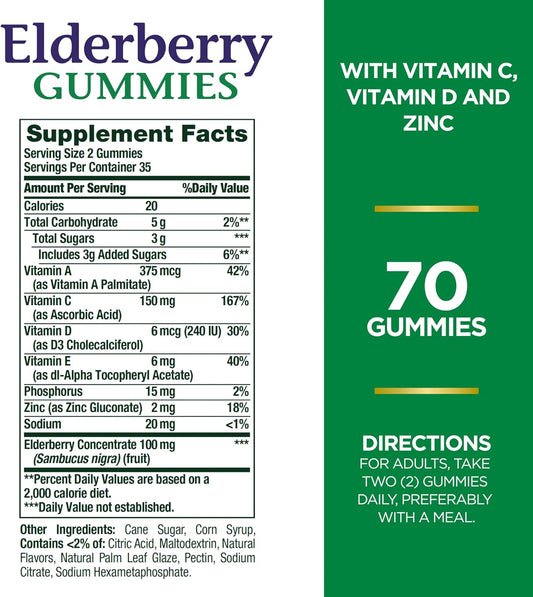 Elderberry Gummies with Vitamin A, C, D, E, Zinc, 100mg - 210 Gummies for Immune Health Boost