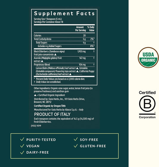 Organic Black Elderberry Nighttime Syrup for Immune Support and Restful Sleep - Gaia Herbs Supplement - 3 Fl Oz