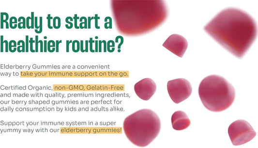 Organic Elderberry Gummies with Zinc & Vitamin C | Dairy-Free Immune Boosting Sambucus Gummies | Antioxidant-Rich Vegan Supplement