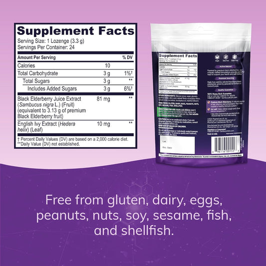 Sambucol Black Elderberry Cough Relief Lozenges with Ivy Leaf - Immune Support Berry Eucalyptus Cough Drops for Adults - 24 Count
