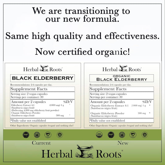 Organic Black Elderberry Capsules | Max Strength | Vegan | Made with Organic Sambucus | 60 Capsules