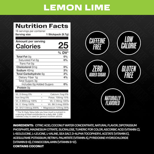 Premium Lemon Lime Electrolyte Powder Supplement for Intra and Post Workout Hydration - 14 Travel Packets