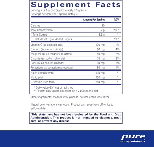 Pure Encapsulations Electrolyte Energy Formula Powder - Hydration Supplement for Muscle Recovery, Minerals, Mental Focus - 12 oz