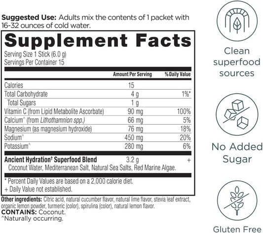 Natural Sea Salt and Red Marine Algae Electrolyte Powder for Rapid Hydration, Lemon Lime Flavor, 15 Servings
