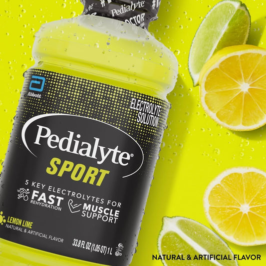 Pedialyte Sport Electrolyte Solution - Hydrate Fast with 5 Key Electrolytes - Lemon Lime, 1 Liter Bottle