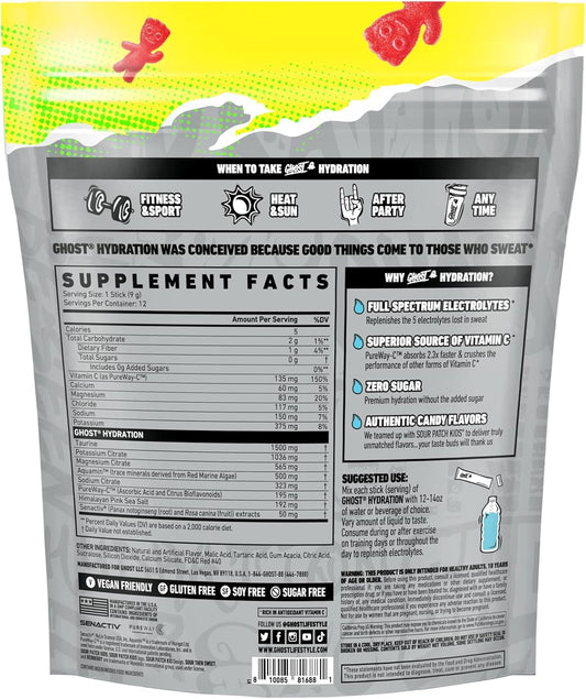 Sour Patch Kids Redberry Electrolyte Powder Drink Mix - GHOST Hydration Packets, 12 Sticks, Vegan & Gluten-Free