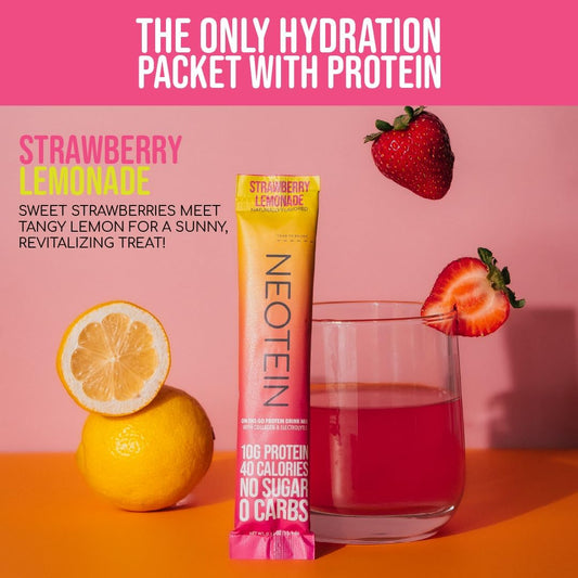Strawberry Lemonade Electrolyte Powder Packets with 10g Protein & Collagen - Keto & Paleo Friendly - 15 Pack, 40 Calories
