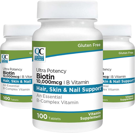 100 Count Biotin 10,000 mcg + B Tablets for Stronger Nails, Skin, & Hair - High Potency Formula