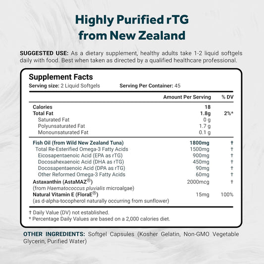 Wild New Zealand Tuna Omega 3 Fish Oil Softgels - 1800mg Full Spectrum EPA, DHA & DPA - Non-GMO, Gluten Free - 90 Count