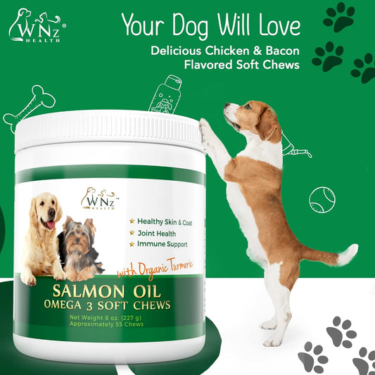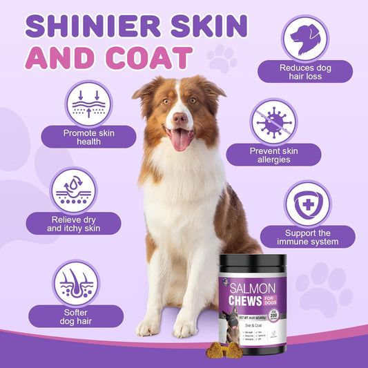 Omega 3 Skin and Coat Chews for Dogs - Salmon Oil Supplement for Joint Pain, Immune Support - Chewable Treats for Itchy Skin Relief - 55 Chews, 8 Oz