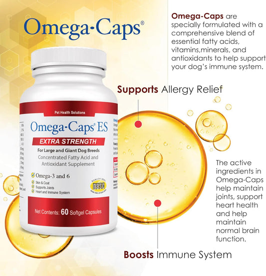 Omega-Caps Extra Strength for Large Breeds: Vet Formulated Skin & Coat Support with Omega 3 - 60 Soft Gels