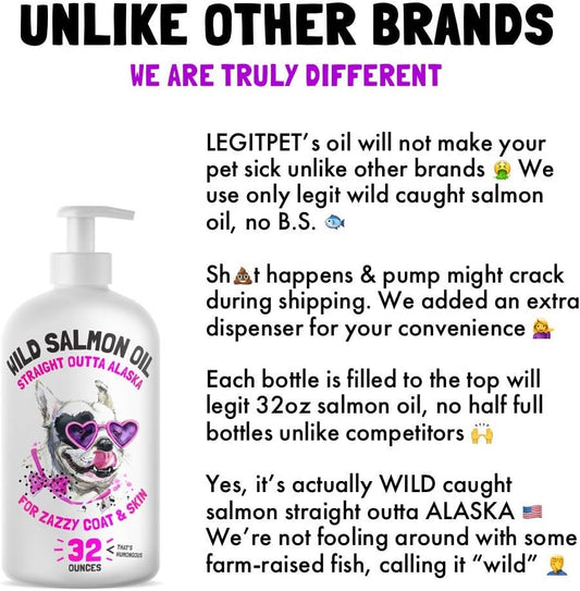Wild Alaskan Salmon Oil for Dogs & Cats - Omega 3 6 9 Liquid Fatty Acids - Skin & Coat Supplement - Supports Joint, Brain, Eye, Immune & Heart Health - Made in USA - 32 oz