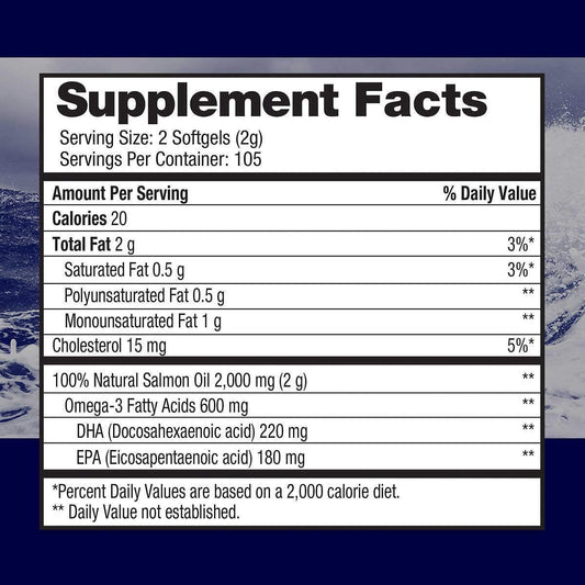 Wild Alaskan Salmon Oil Capsules - 1000mg, 210 Count - Pure Omega-3 Supplement from Alaska