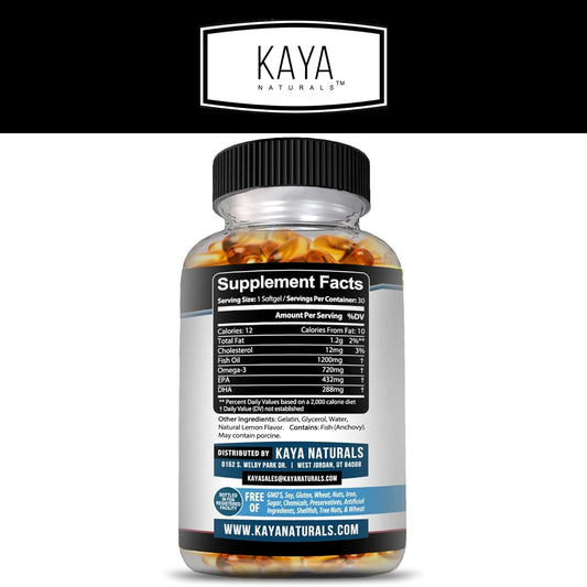 Pure Sea-Harvested Omega 3 Fish Oil Softgels - 30 Count | No Fishy Aftertaste - Kaya Naturals Omega 3 Supplement | Nature Made Omega 3 Vitamins
