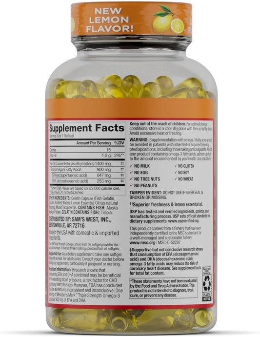 Triple Strength Fish Oil Softgels - 900mg (150 Count) by Member's Mark