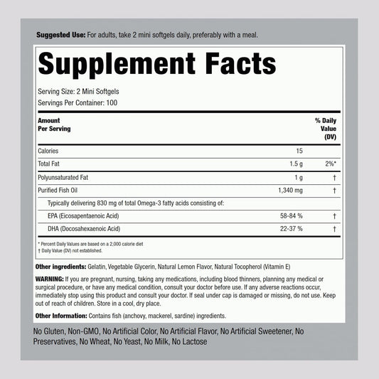 Omega-3 Fish Oil Softgels 1340mg | 200 Mini Lemon Flavored Pills | Non-GMO, Gluten Free SupplementVendor:My StoreRegular price $115.39 AUDRegular priceUnit price / per-