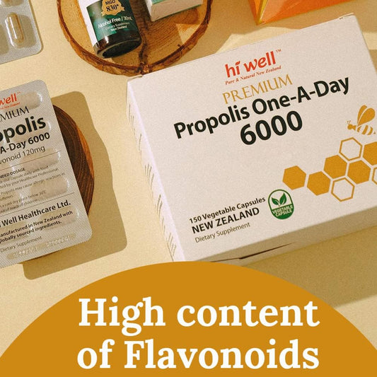 Hi Well Premium Propolis 6000 Flavonoid Capsules - Pure & Natural New Zealand Propolis Supplement