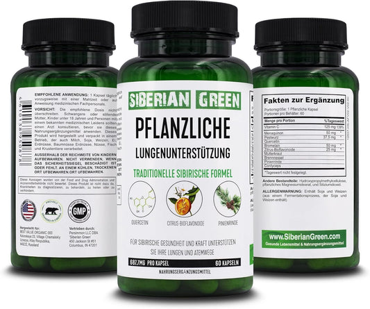 Siberian Green Lung Support Complex Capsules - Traditional Formula with Quercetin & Citrus Bioflavonoids