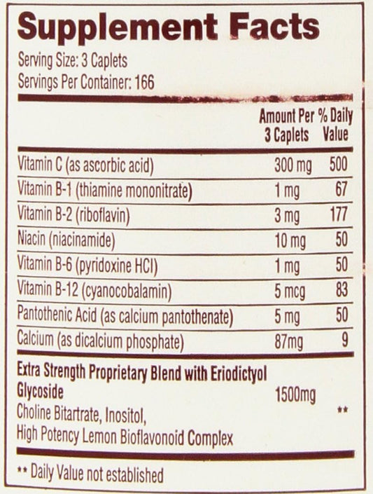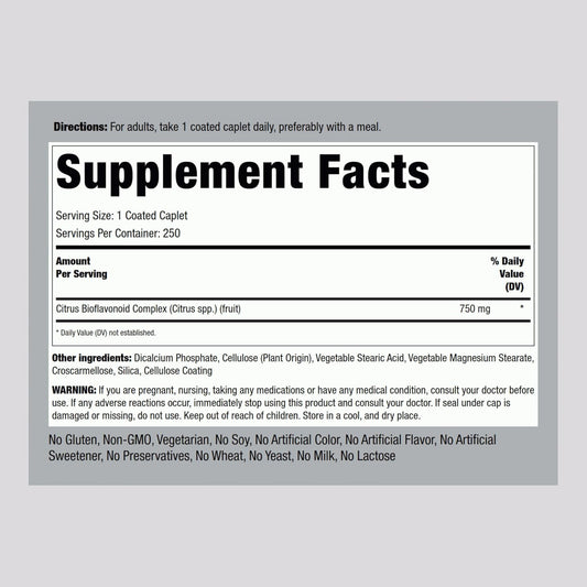 750 mg Citrus Bioflavonoids Complex Supplement - 250 Caplets - Non-GMO & Gluten Free