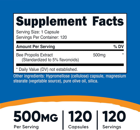 High-Quality Nutricost Bee Propolis Supplement with 5% Flavonoids - 500mg - 120 Capsules