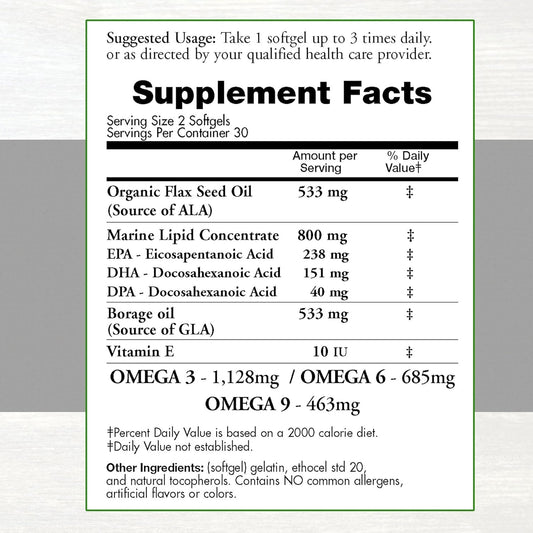 Organic Flax Seed Oil & Fish Oil Blend with Omega 3-6-9 - 2,800mg Strength - Gluten Free - Made in USA - 60 SoftGels