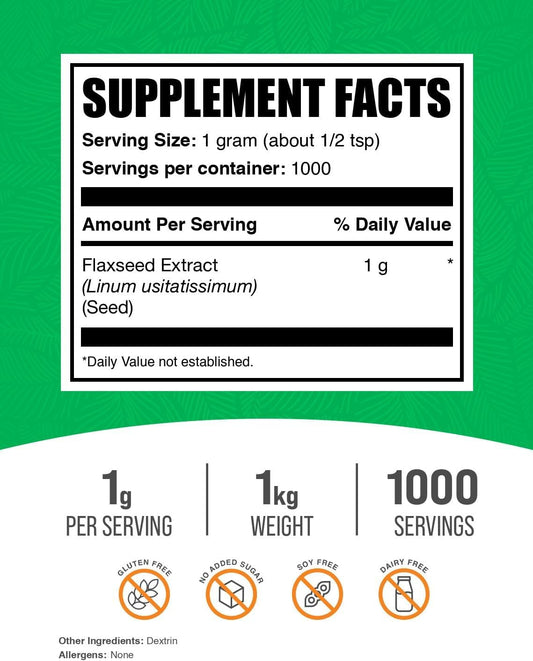 BulkSupplements.com Ground Flaxseed Extract Powder - Gluten-Free Omega-3 Supplement, 1000mg per Serving, 250g (8.8 oz) Pack