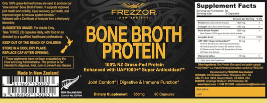 450 Capsules of FREZZOR Bone Broth Protein - Grass-Fed New Zealand Cattle Source for Joint, Skin, Hair, Nail Support, Amino Acids, Anti-Aging, Pain Relief - Pack of 5